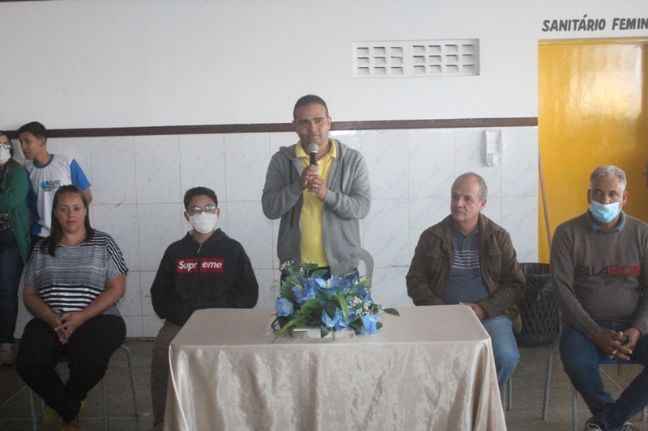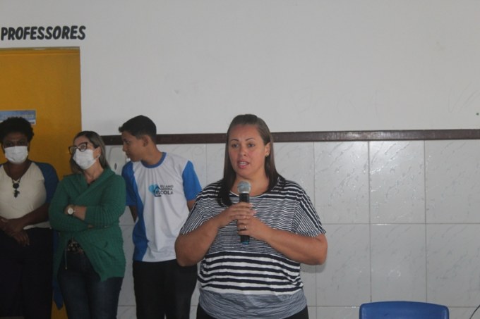 Secretario Municipal de Educação, Iury Mendes, com a presença de professores,