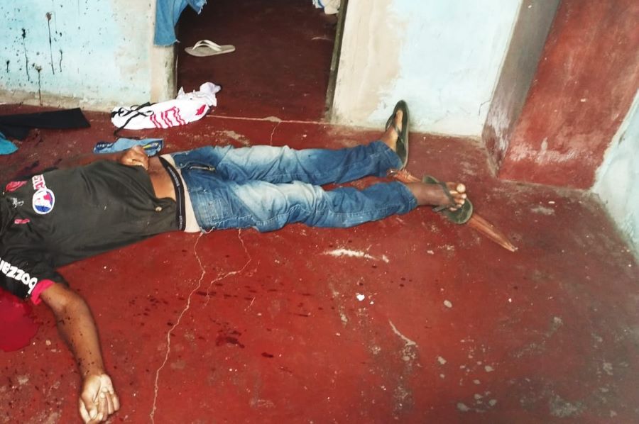 Ao chão corpo da vítima do homicídio, Alcemi Correia dos Santos.
