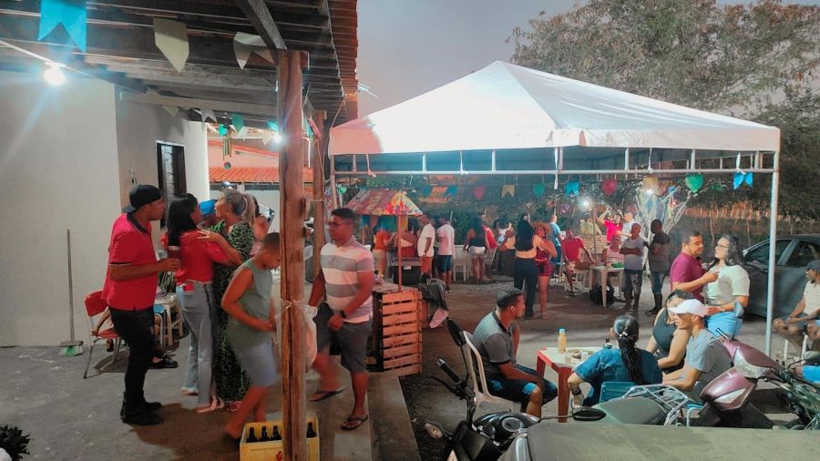 Durante a festa, foi possível notar a presença de crianças, jovens e adultos, todos aproveitando o clima festivo e descontraído. O local estava decorado com bandeirinhas coloridas, balões e elementos típicos das festividades juninas, como as fogueiras e as comidas típicas.