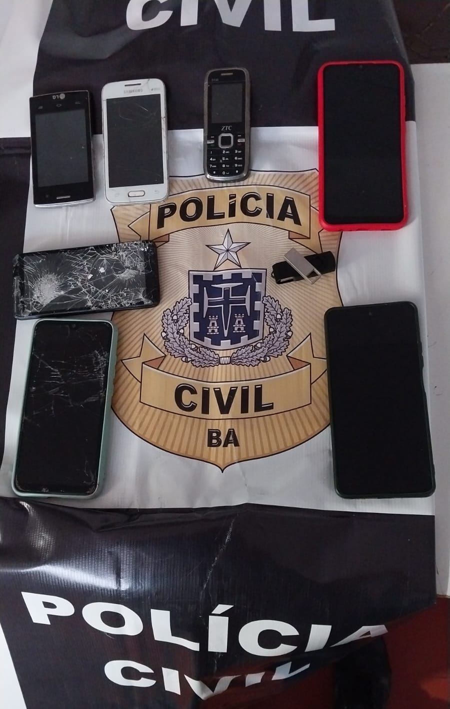 Durante a diligência, os policiais civis apreenderam sete aparelhos celulares, dois pendrives e um teclado, objetos que podem conter elementos de prova relacionados à conduta investigada. Todo o material foi encaminhado à unidade policial, onde será submetido à análise pericial.